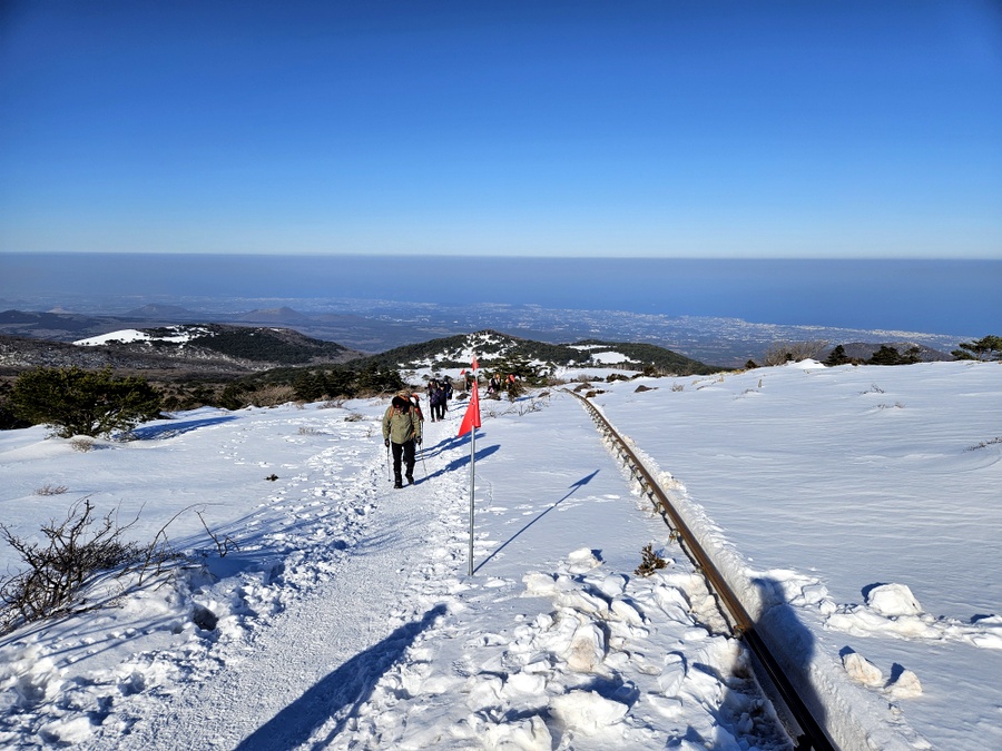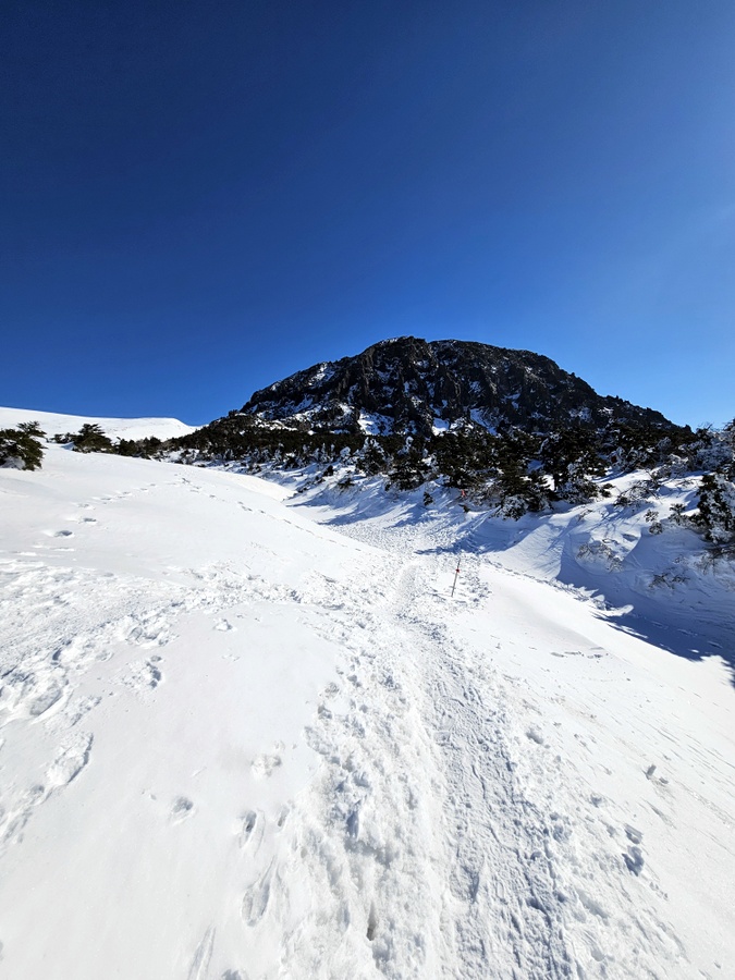 영실방향에서 올라오면 지나게 되는 길. 노루샘은 눈에 묻혀 보이지도 않고.