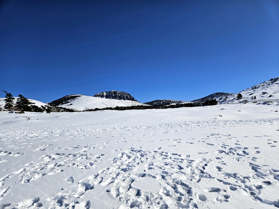 끝없이 눈쌓이 풍경과 주변을 둘러싼 오름들로 풍경이 정말 아름다운 곳이다.