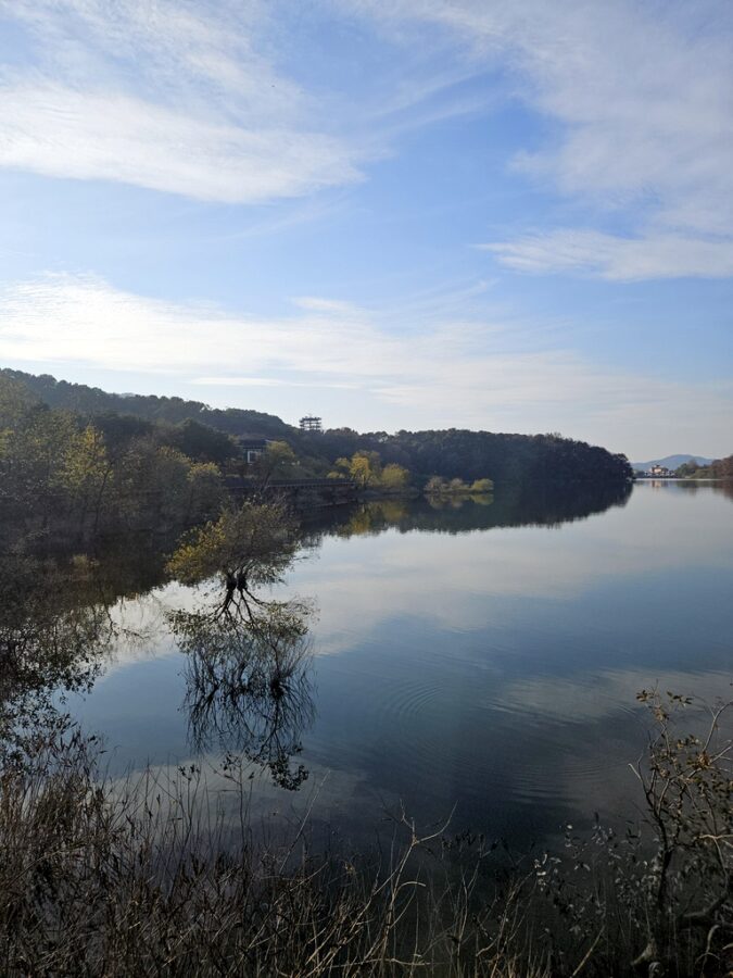 호수 주변 둘레길은 “박두진문학길”로 여기저기 시인의 시가 걸려 있어서 하나씩 읽어보며 천천히 걷기에 좋다.